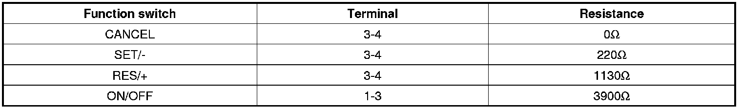 2. Measure resistance between terminals on the control switch when each function switch is ON (switch is depressed).