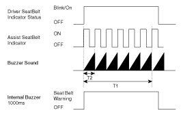 (2) While IGN1 ON status if there is a Seat Belt transition FASTEN -> UNFASTEN, DRIVER SEAT BELT IND and BUZZER SOUND are always activated for one period.