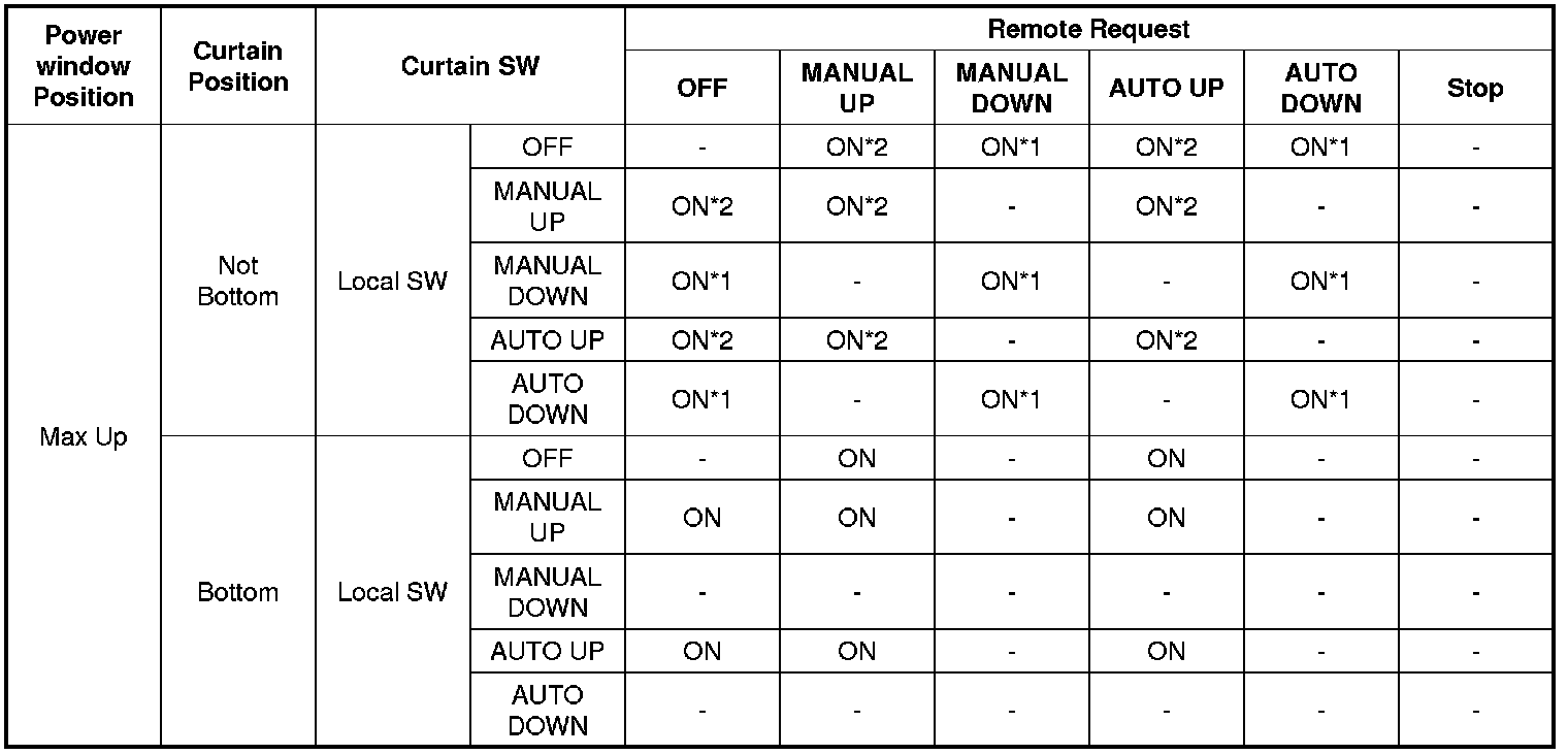 *3, *4 : If Curtain Position or Power window Position is not valid, Curtain SW is only OFF regardless of other condition.