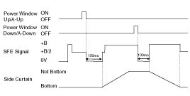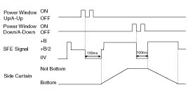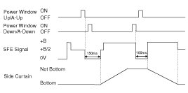 ON*2 : Rear side curtain signal is ON for 150ms.(MANUAL UP or AUTO UP)