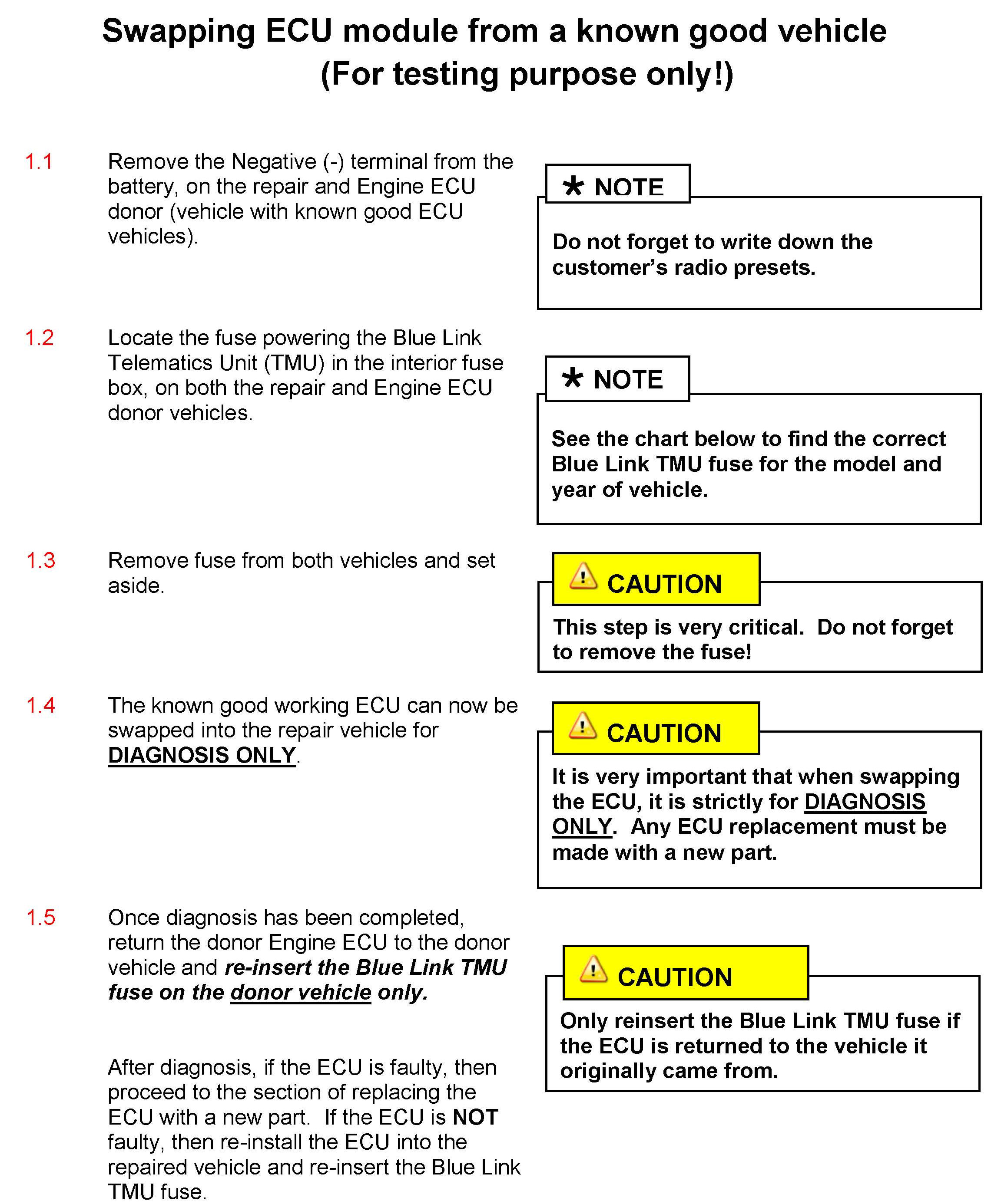 This bulletin describes the following procedure for vehicles equipped with Blue Link: