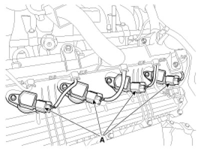 1. Disconnect the ignition coil connectors (A).