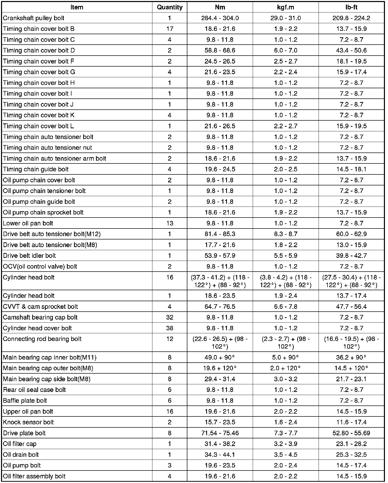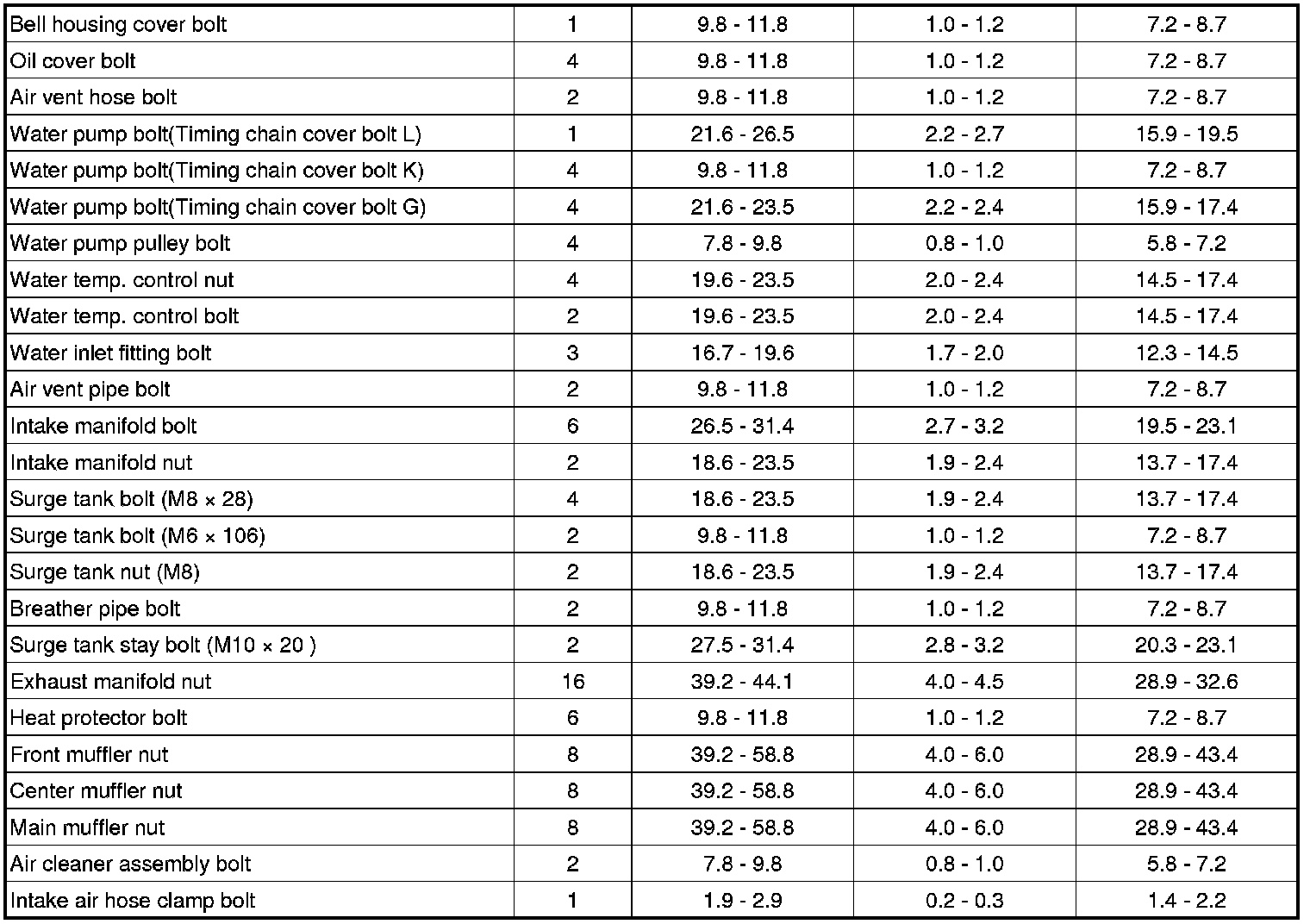 Tightening Torques