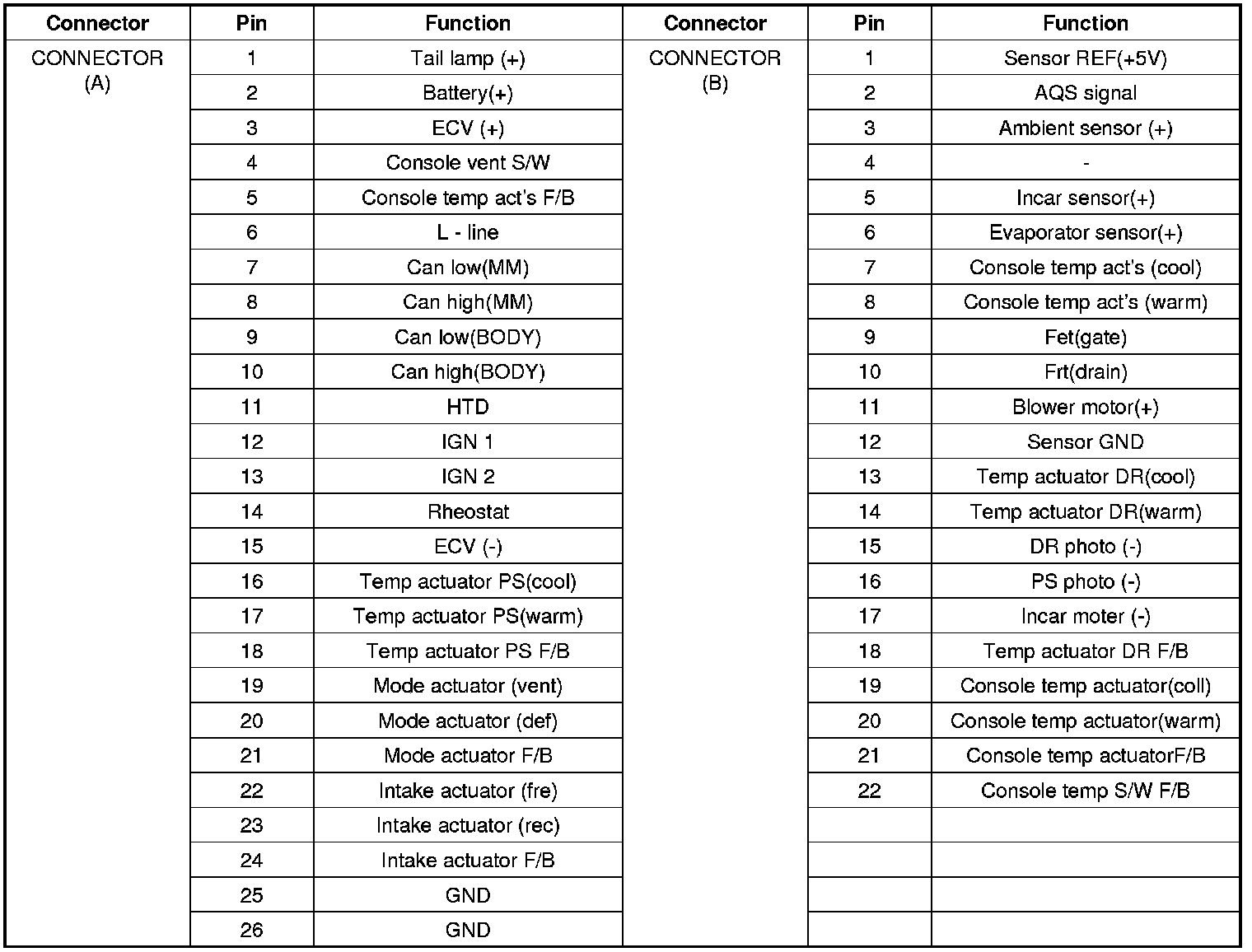 Connector pin function