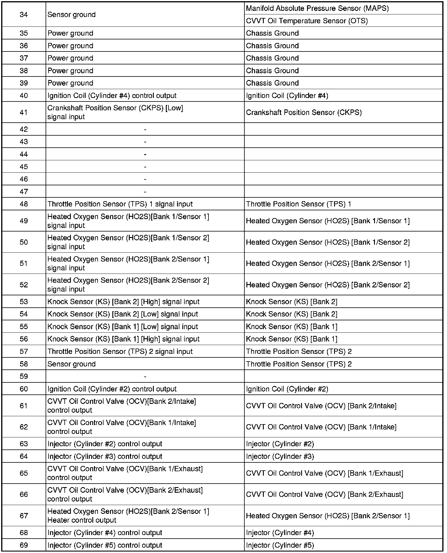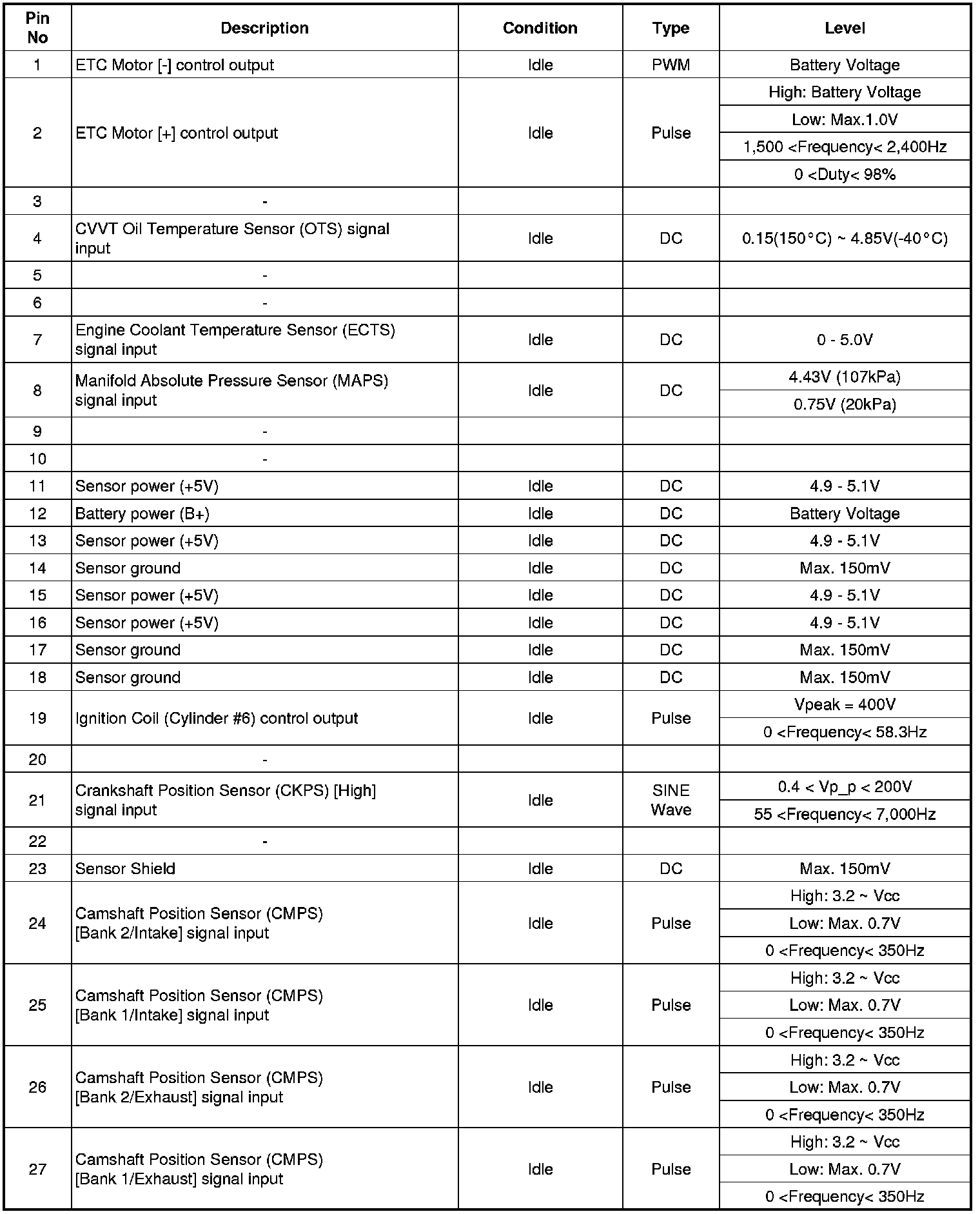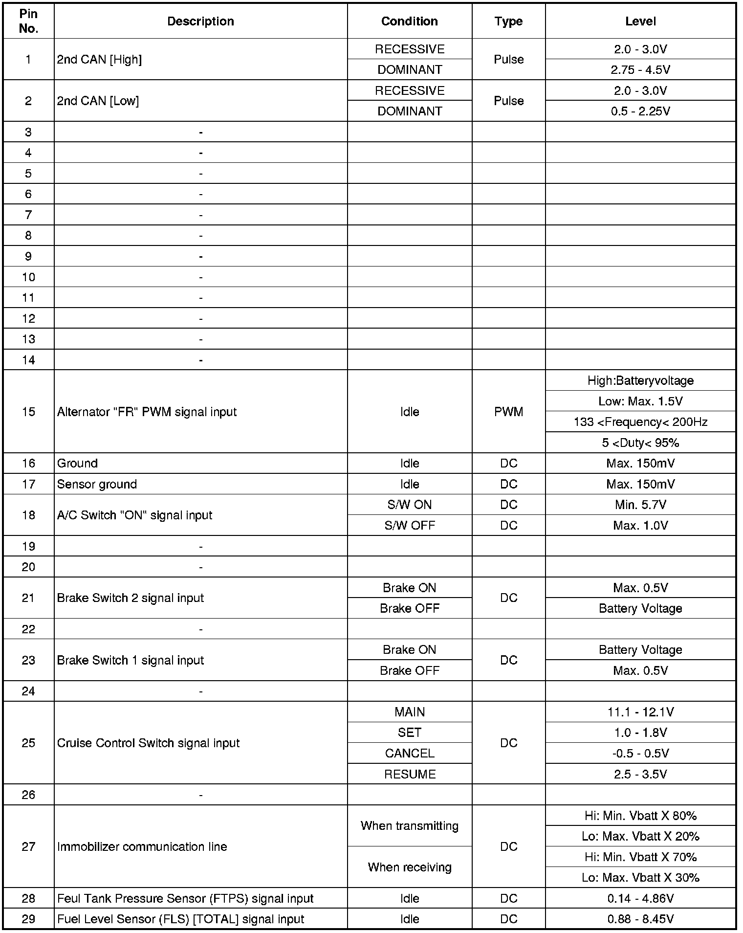 ECM Terminal Input/Output Signal