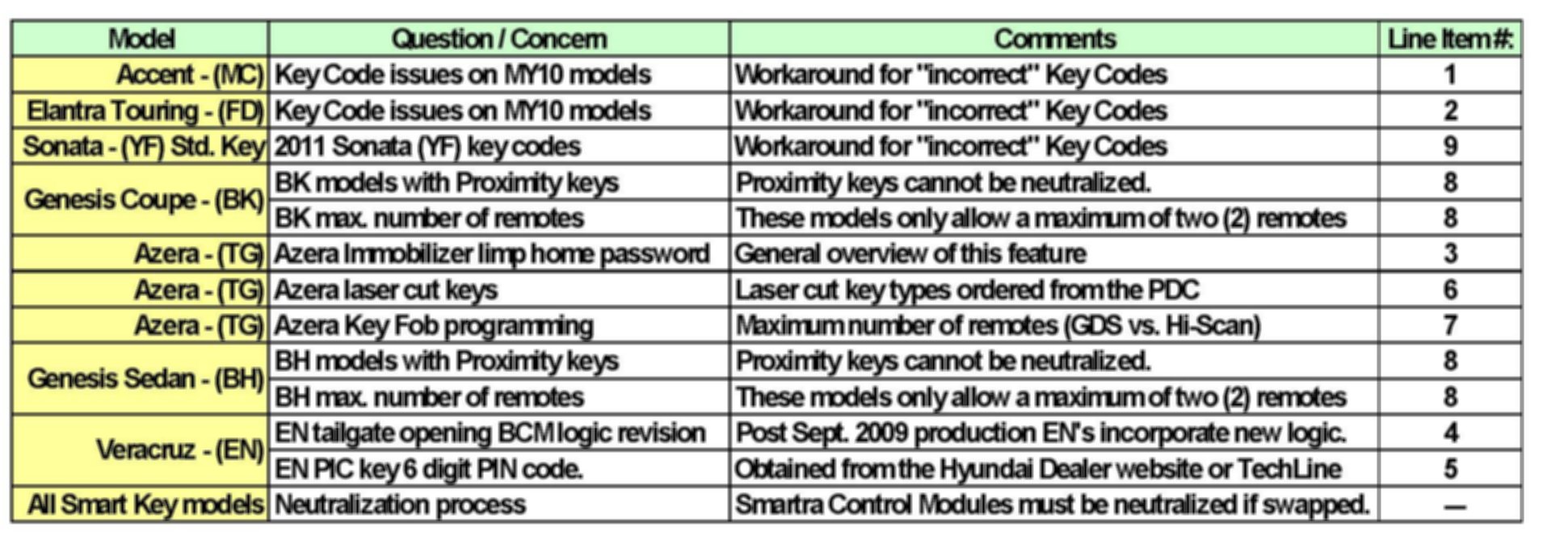 8. BK Genesis Coupe. BH Genesis sedan. and VI Equus models with Proximity Keys cannot be neutralized. Also, these models cannot support more than two (2) Proximity keys.