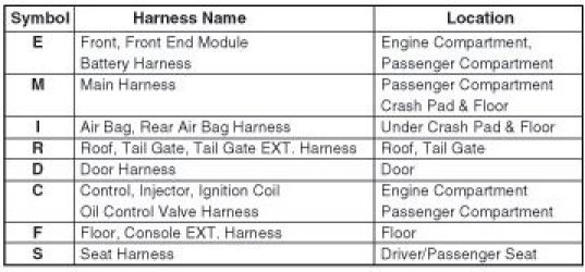 - It depends on vehicles, It is necessary to check the harness name symbol on the harness layouts for detailed symbol.