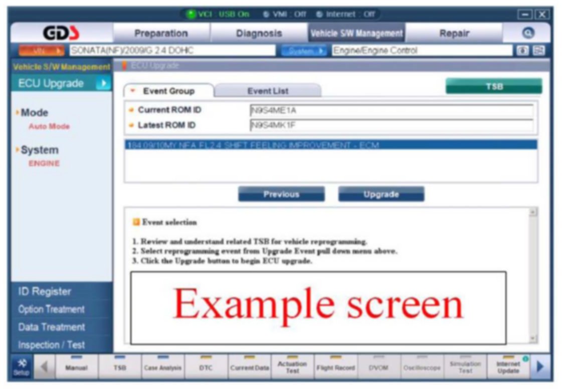 1. From the GDS home page, select ECU Upgrade. If necessary, select the VIN.