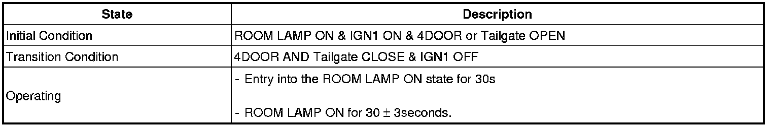 Also, in the state that the KEY IN SW is ON, after the driver's door is opened, if the KEY IN SW is OFF, then the Tail Lamp shall be OFF automatically.