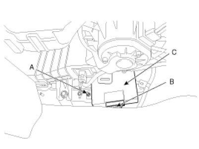 Remove the 4WD ECU(C) after removing the nut (A-2ea) and the connector (B).