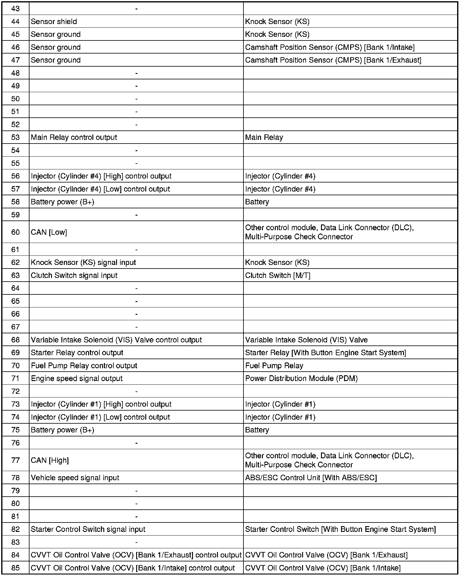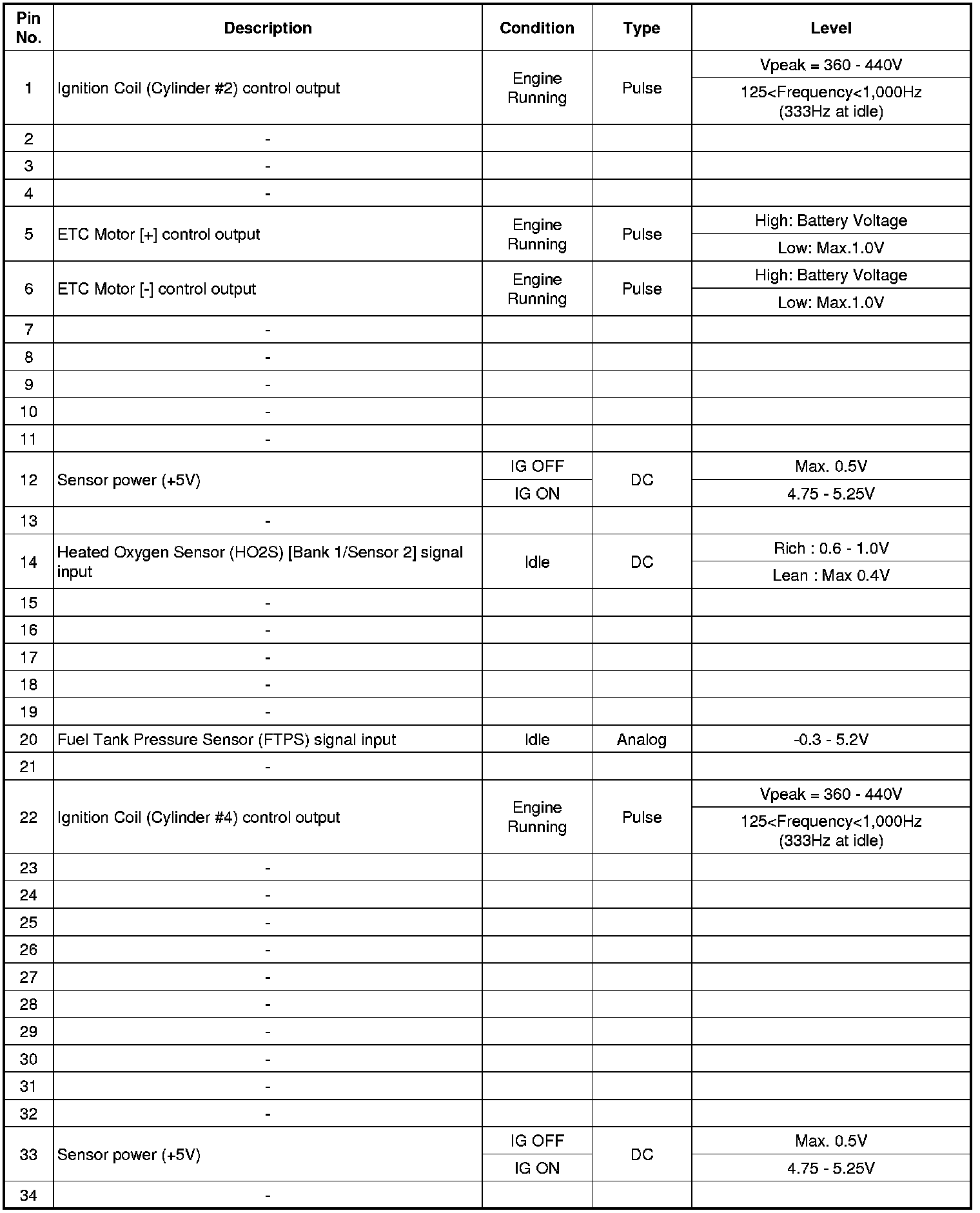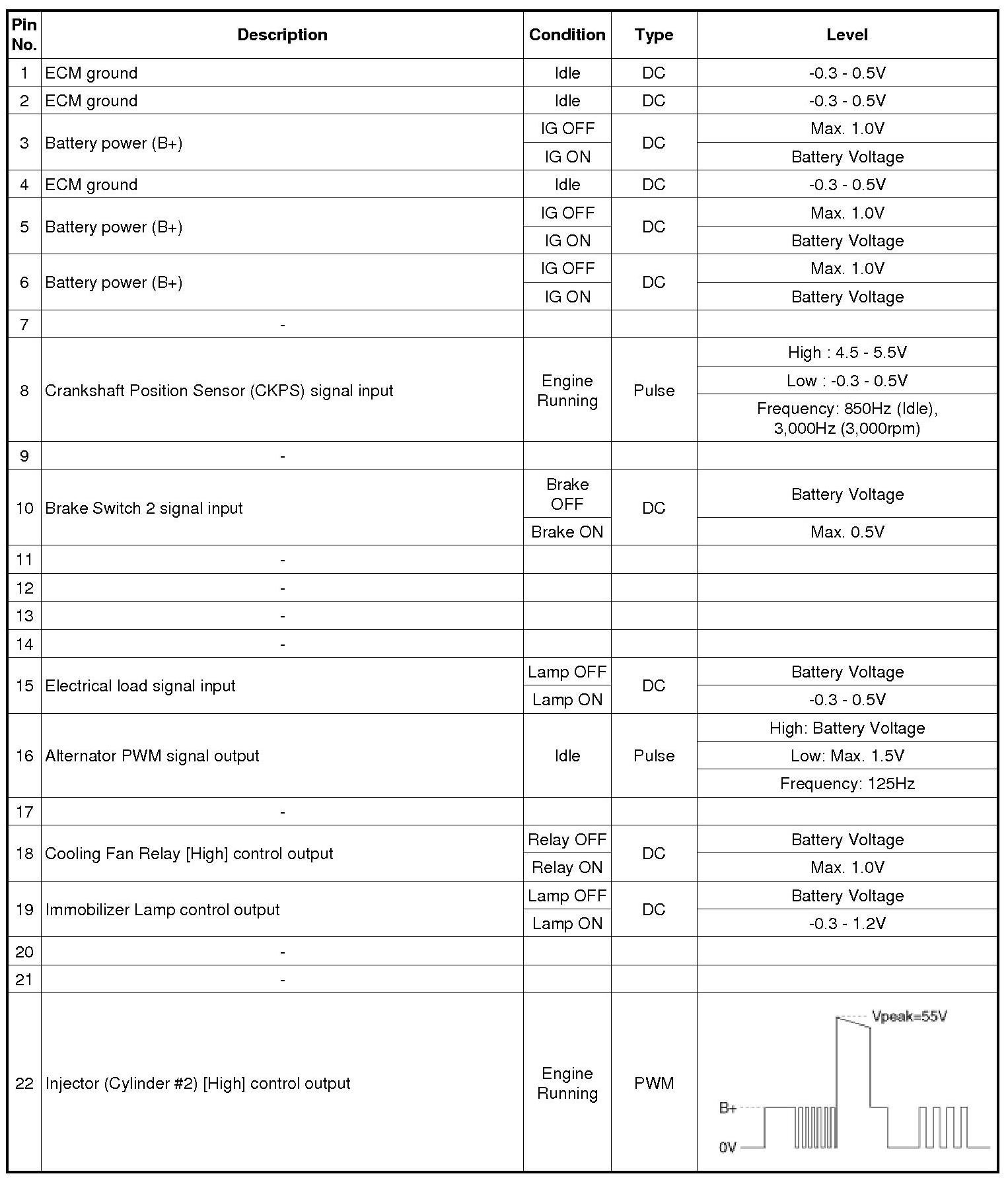 ECM Terminal And Input/Output signal