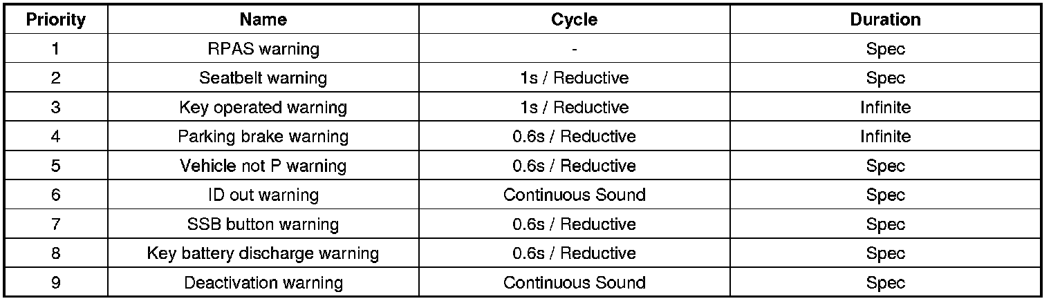 1. Int buzzer every 1sec when driver door switch is on under key in on.