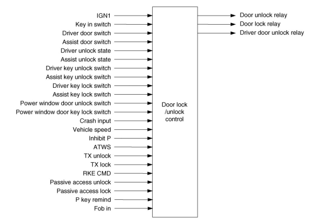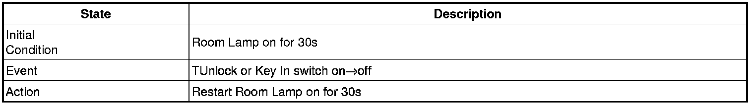 - 4 Door in closed IGN1 off & (Key in -> Key out): 30-second delay will be lights out.