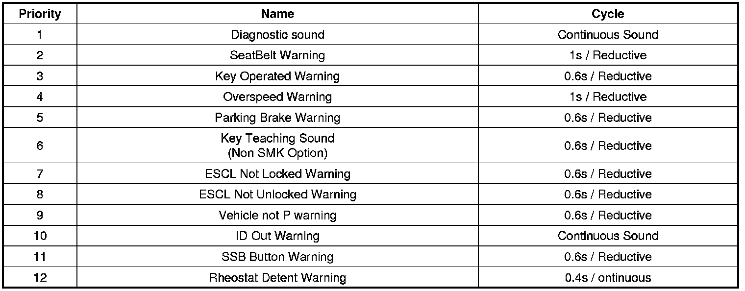 (1) INT buzzer every 0.6sec when Driver door switch is ON under key in ON.