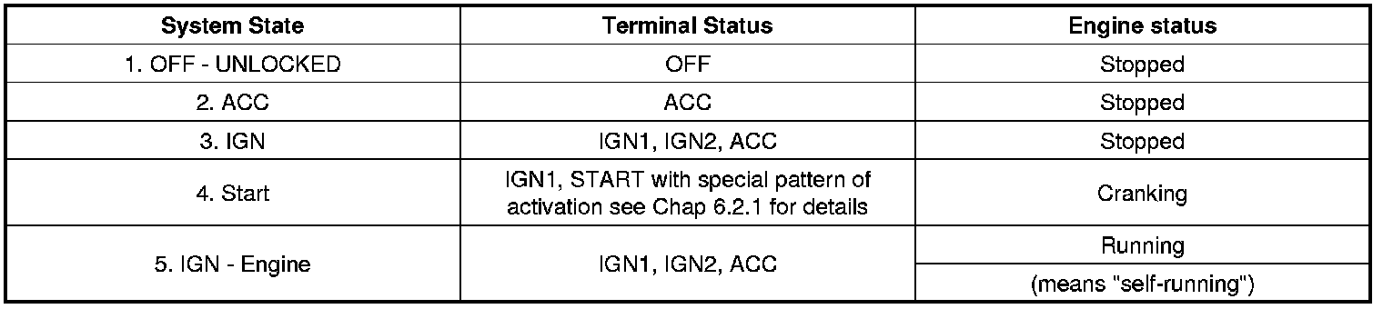 Referring to the terminals, the system states described in the table above are same as those one found in a system based on a mechanical ignition switch.
