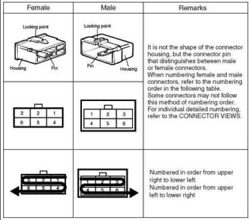 - To make it easy to distinguish connectors, the connector in the picture is indicated being installed in the vehicle.