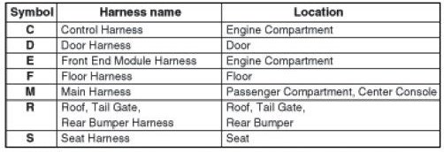 * It depends on vehicles, it is necessary to check the harness name symbol on the harness layouts for detailed symbol.
