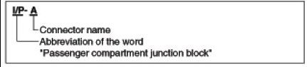A junction block identification symbol consists of a wiring harness location classification symbol corresponding to a wiring harness location and number corresponding to the connector in the junction block.
