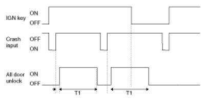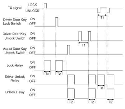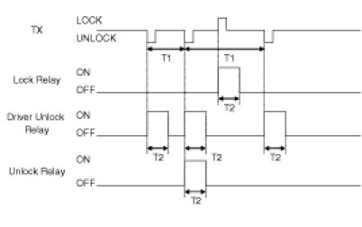 (3) Turn Driver Unlock Relay output ON during T2 when receiving TUNLOCK signal. However, turn Driver Unlock Relay, Unlock Relay (Central Unlock) output during T2 if TUNLOCK is received within T1.