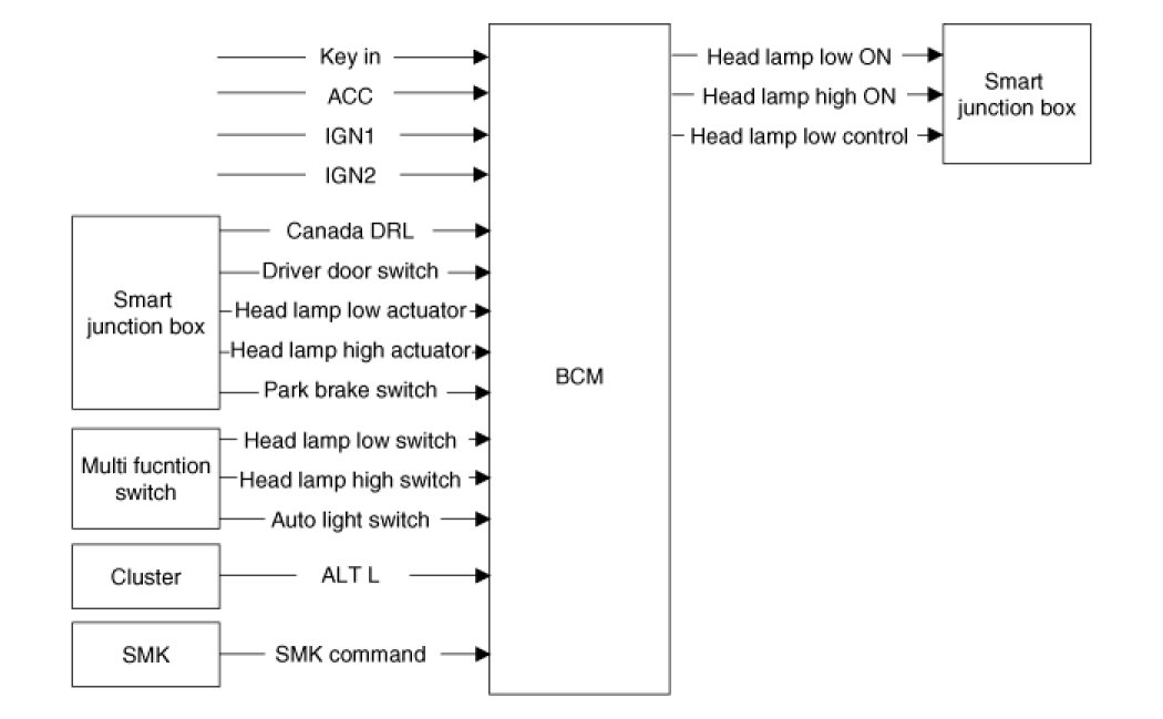 A. In IGN terminal state(IGN=ON) and Head lamp low switch On, if turn on the Head lamp high switch=ON, Head lamp high outputs are turned on.