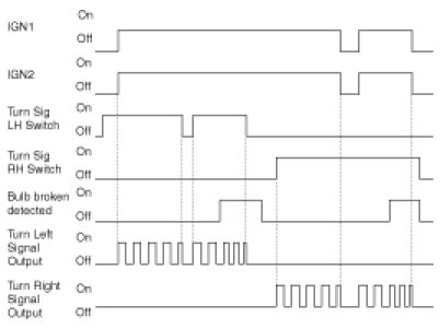 A. If the Left (or Right) turn switch is active and if IGN2 is On, the left (or Right) turn signal outputs are driven.