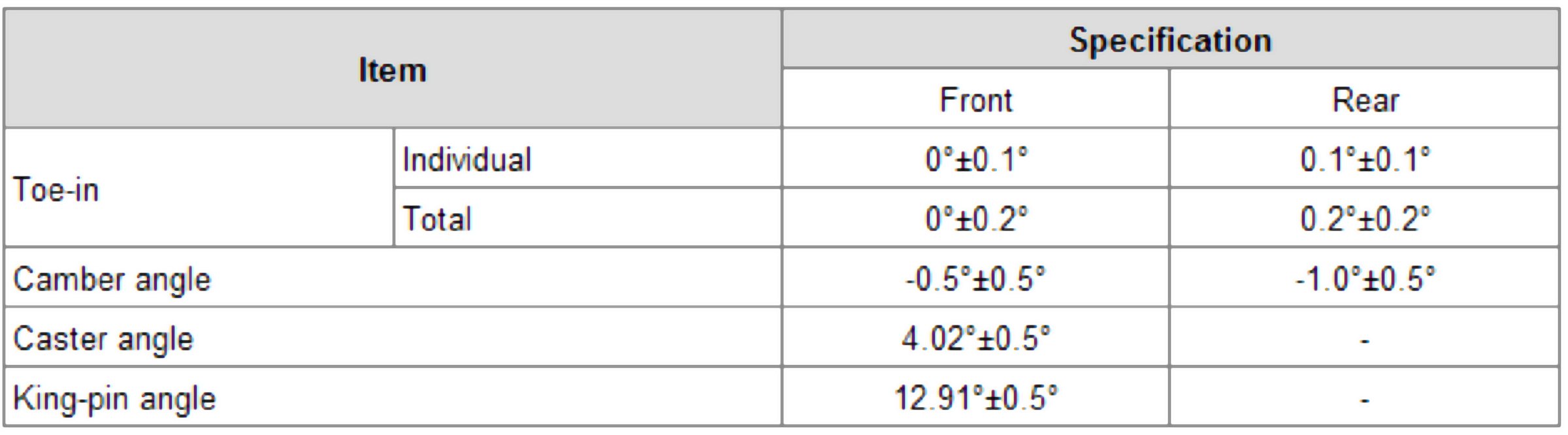 Wheel Alignment Specifications
