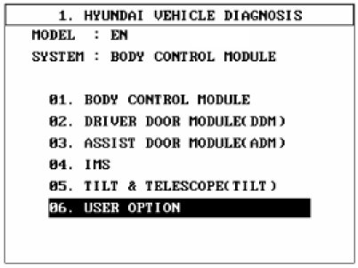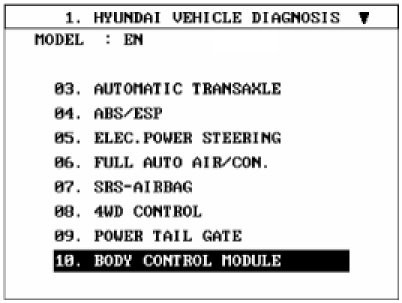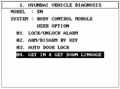 2. Select "BODY CONTROL MODULE", if you will check "GET IN & GET DOWN LINKAGE" of BCM.