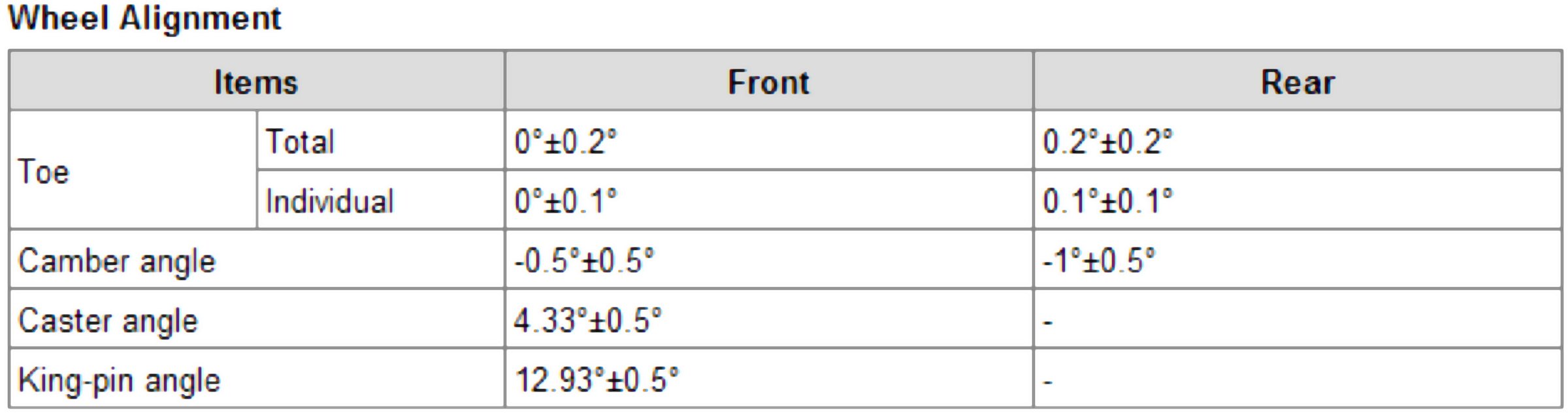 Wheel Alignment Specifications