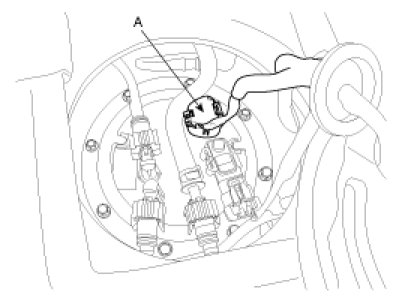 (4) Disconnect the fuel pump connector (A).
