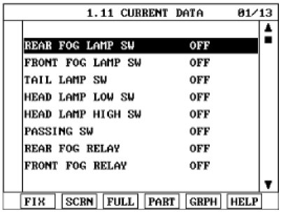 3. Select "Current data", if you will check current data of BCM. It provides power supply status, multi function status, lamp status, door status, lock system status, wiper, auto light status and so on.