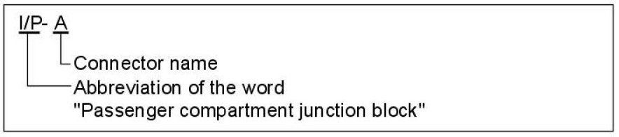 A junction block identification symbol consists of a wiring harness location classification symbol corresponding to a wiring harness location and number corresponding to the connector in the junction block.