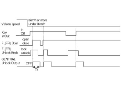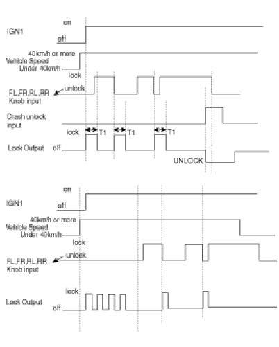 (3) if there is equal output command during output Priority order same Door lock/unlock, input ignore. if there is contrast output command during output Priority order same Door lock/unlock, input ignore and present output immediately discontinue and executes output that is inputted after 100 ms(except CRASH UNLOCK, Without waiting TIME 100 ms immediately action enforcement)