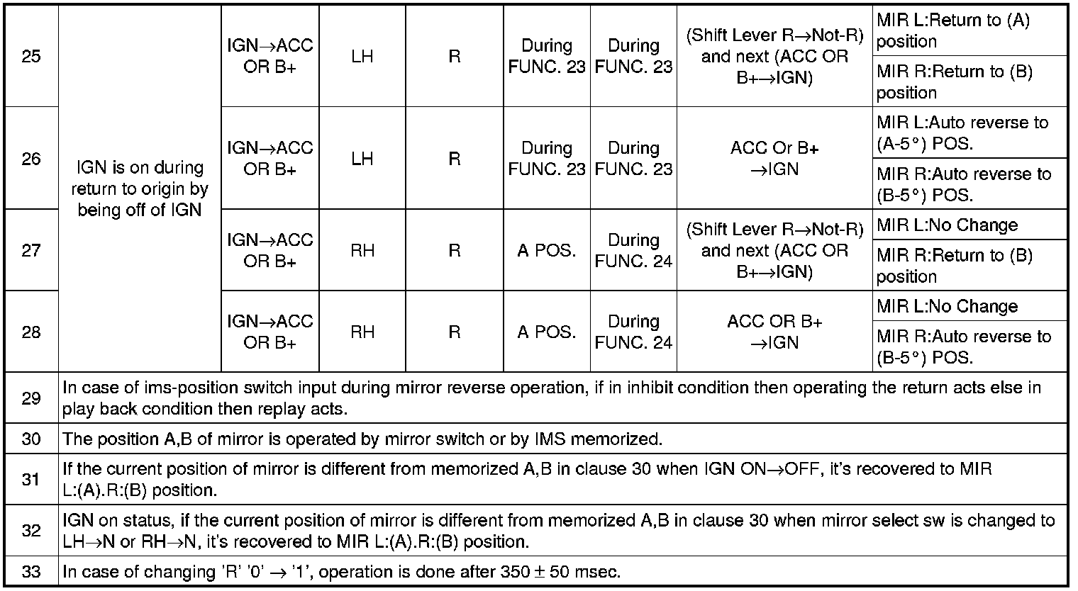 (1) When the each position switch is pressed at the ON state of the IGN2, the mirror shall be positioned according to the memorized value.