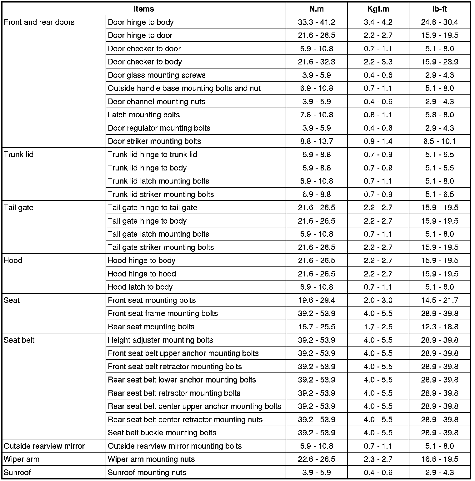 Tightening Torque
