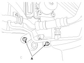 5. Loosen the HECU bracket nuts (A), then remove HECU and bracket.