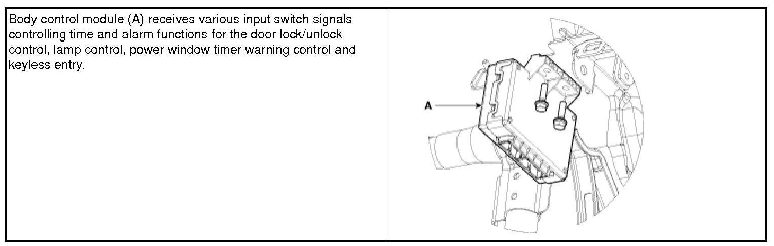 Home >> Hyundai >> 2012 >> Accent L4-1.6L >> Repair and Diagnosis >> Powertrain Management >> Computers and Control Systems >> Body Control Module >> Description and Operation >> Part 1 of 2