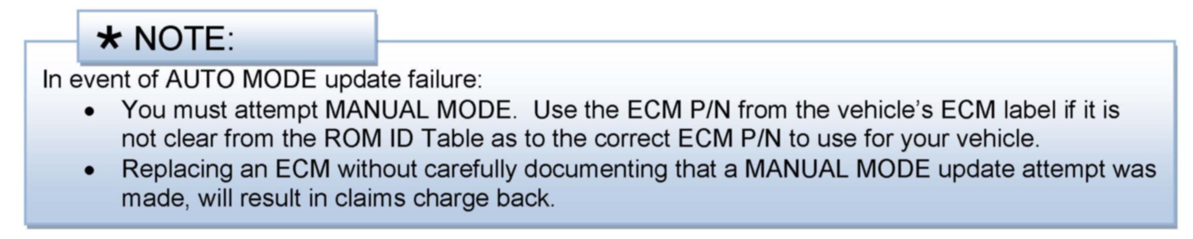 ^ Do not force Manual Mode if you get an error in Auto Mode that the vehicles current ROM ID did not apply.