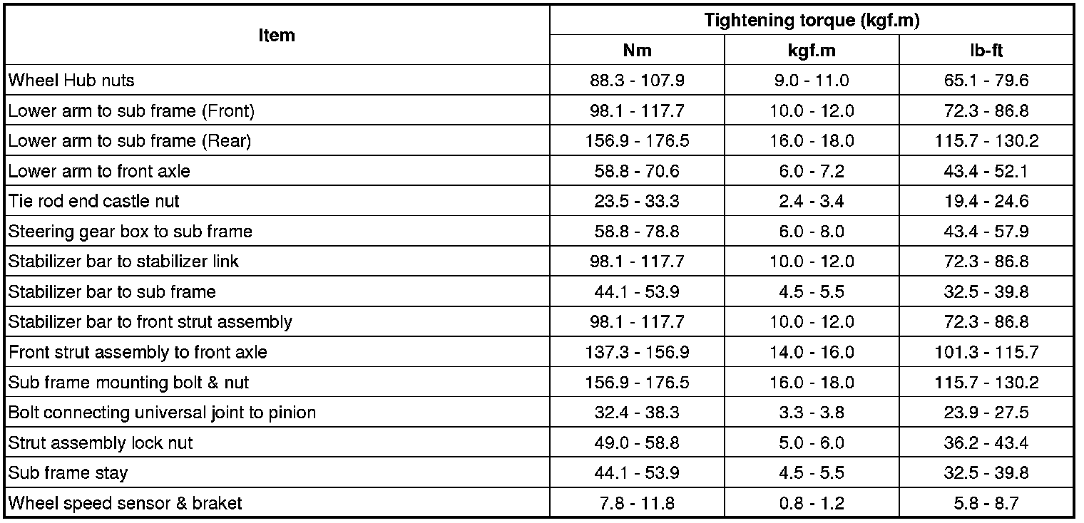 Tightening Torques