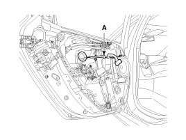 7. Disconnect the connectors and rear door module wiring harness (A).