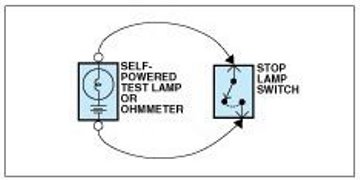 Use a self-powered test lamp or an ohmmeter to check for continuity.