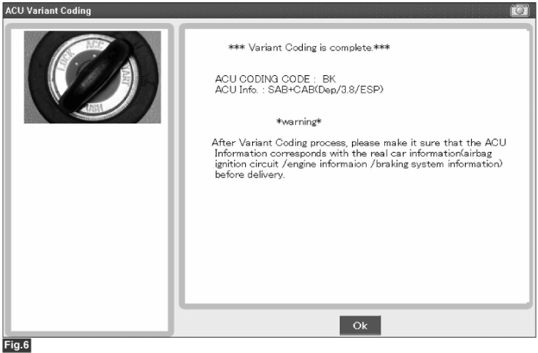 2. If the variant coding is failed, DTC B1762 (ACU Coding Error) will be displayed and the warning lamp will be turned on.