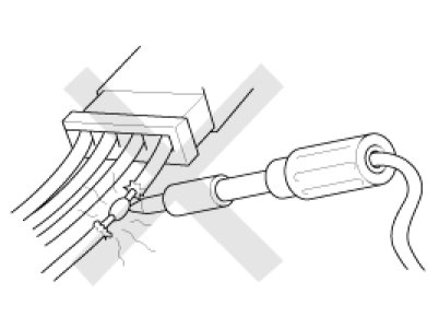 - When using electrical test equipment, insert the probe of the tester into the wire side of the connector.