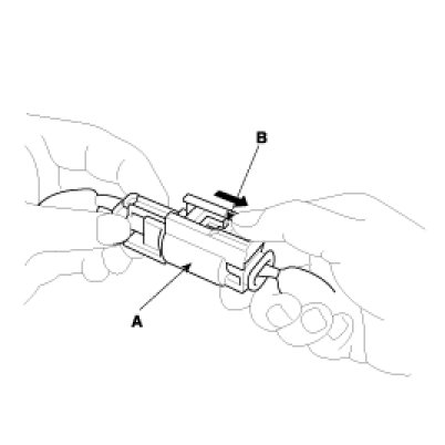 To release the lock, pull the spring-loaded sleeve (A) and the slider (B), while holding the opposite half of the connector.