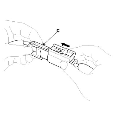 Hold both connector halves and press firmly until the projection(C) of the sleeve-side connector clicks to lock.
