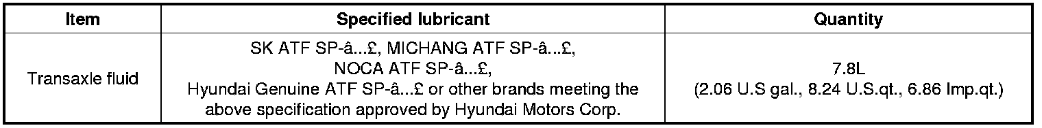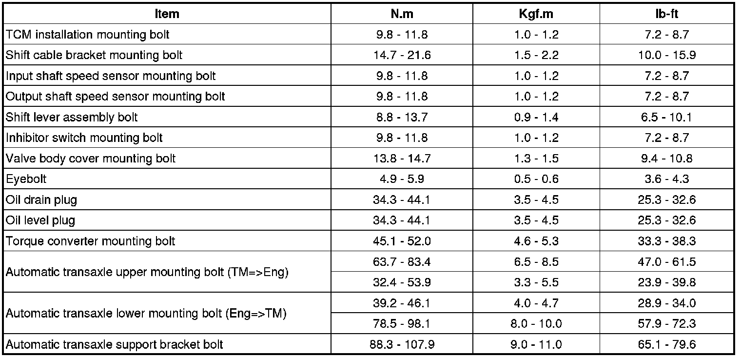 Home >> Hyundai >> 2012 >> Azera V6-3.3L >> Repair and Diagnosis >> Specifications >> Mechanical Specifications >> Automatic Transmission/Transaxle >> System Specifications