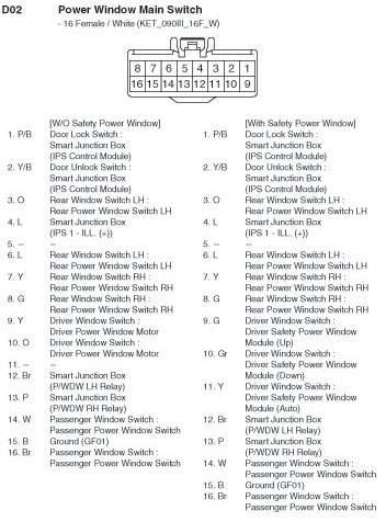 D02 Power Window Main Switch: