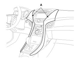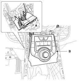 3. After leasing the mounting screws, disconnect the connector (A), and then remove the center fascia cover (B).
