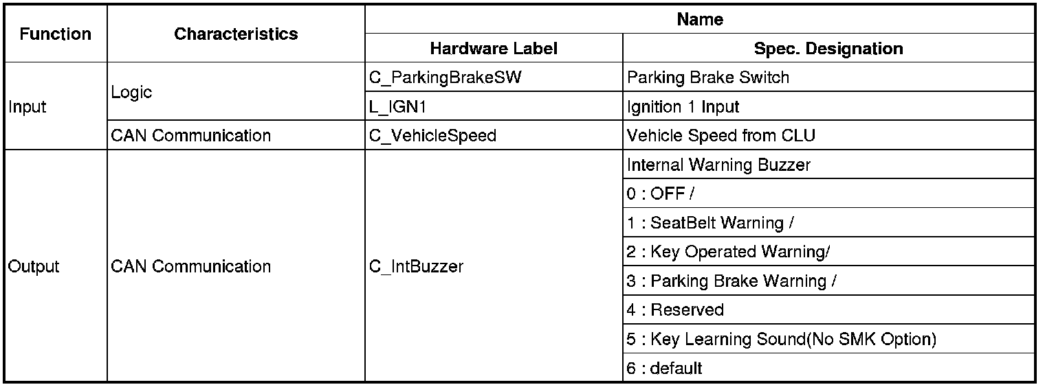 2. Output is off if key ign is in off and driver door switch closed are met during Internal buzzer output.
