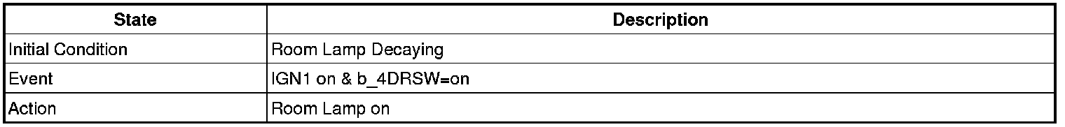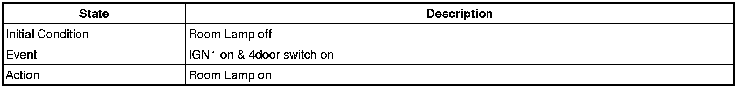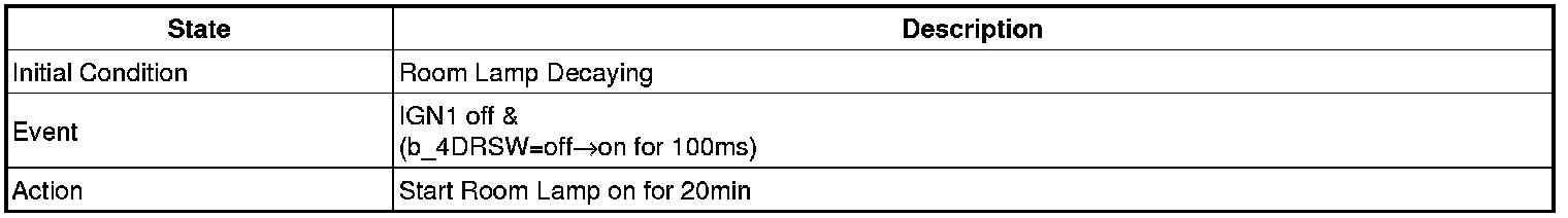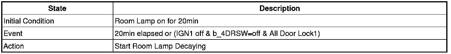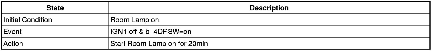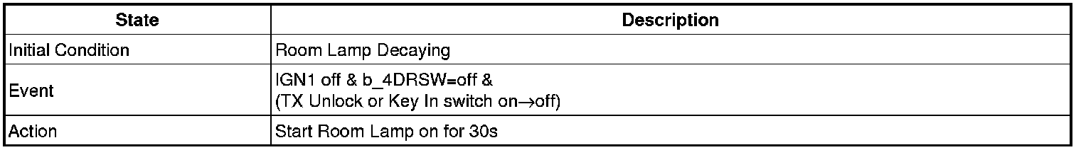 - 4 Door in closed IGN1 off & (Key in -> Key out): 30-second delay will be lights out.
