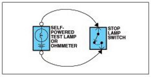 Use a self-powered test lamp or an ohmmeter to check for continuity.